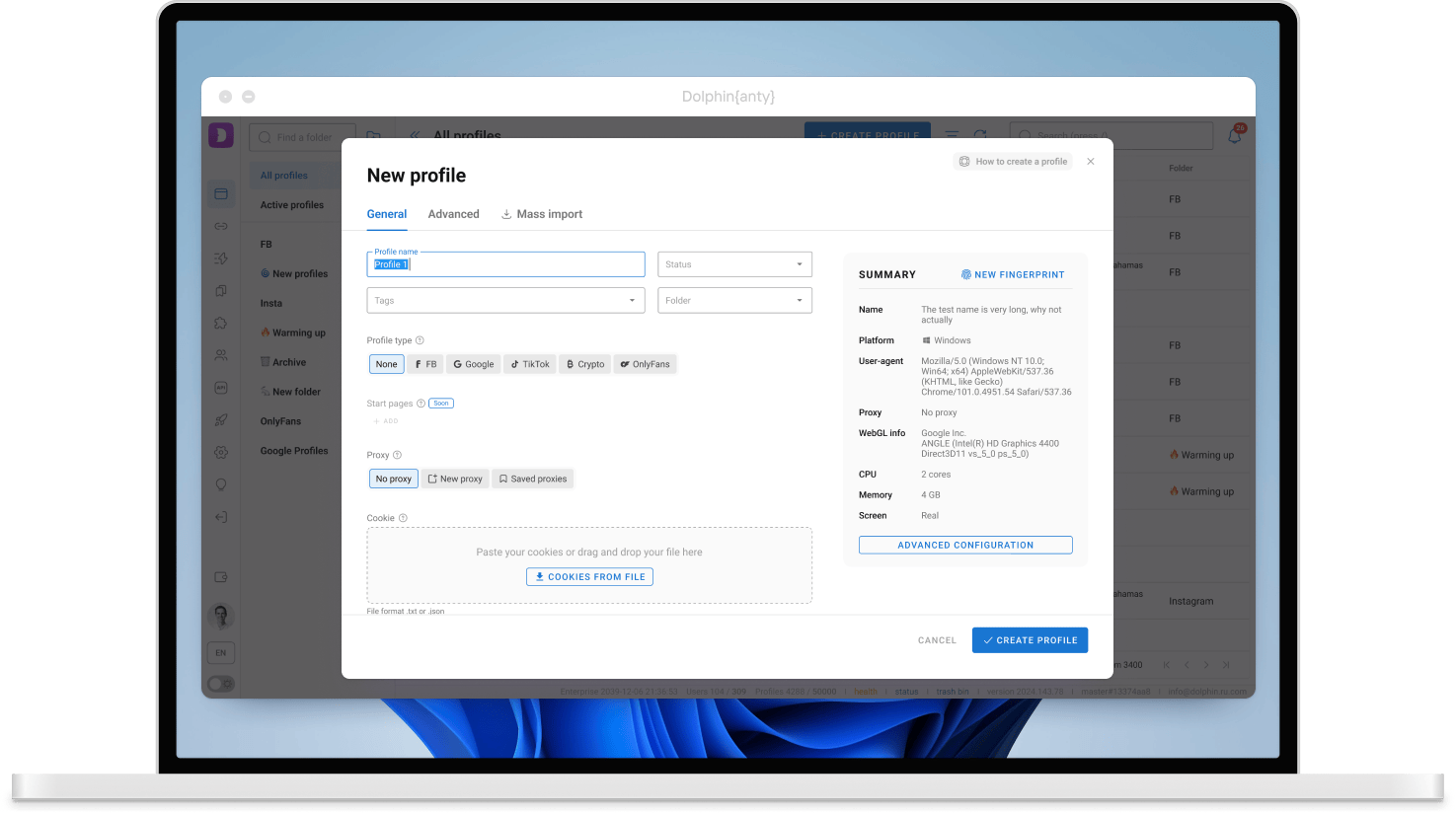 When creating a profile quickly, we use real fingerprints. So you don’t have to spend a long time setting up a profile every time before launching it